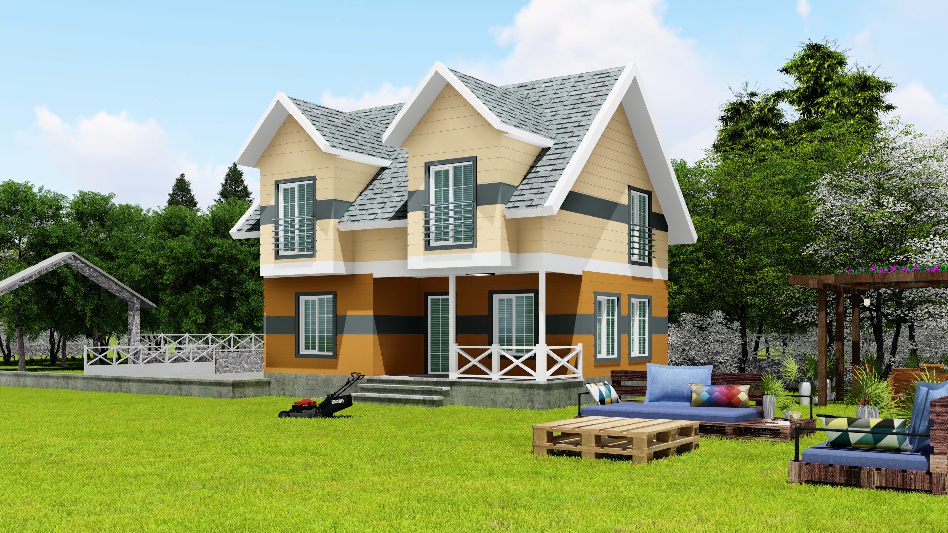 125m²Zemin Kat ( 62.5m² )Salon : 20m²Mutfak : 11m²Banyo : 5m²Antre : 10m²Veranda 1 : 4m²Veranda 2 : 10m²