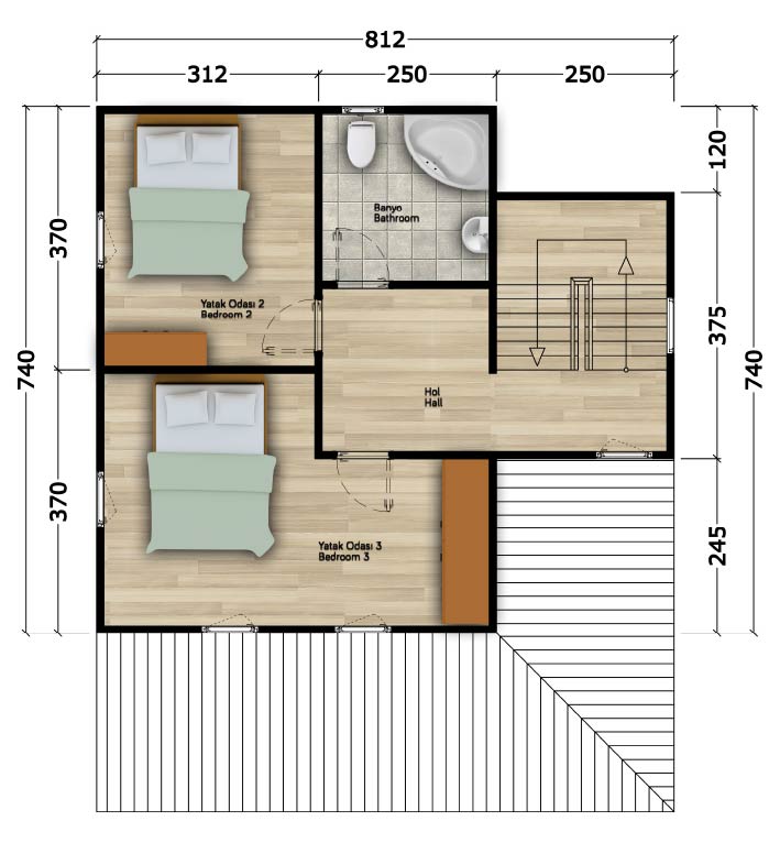 Normal Kat ( 52m² )Yatak Odası 2 : 11m²Yatak Odası 3 : 17m²Banyo : 6m²Hol : 9m²