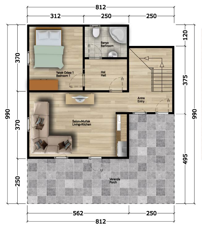 130m²Zemin Kat ( 78m² )Salon+mutfak : 20m²Yatak Odası 1 : 11m²Banyo : 5m²Hol : 5m²Antre : 10m²Veranda : 30m²