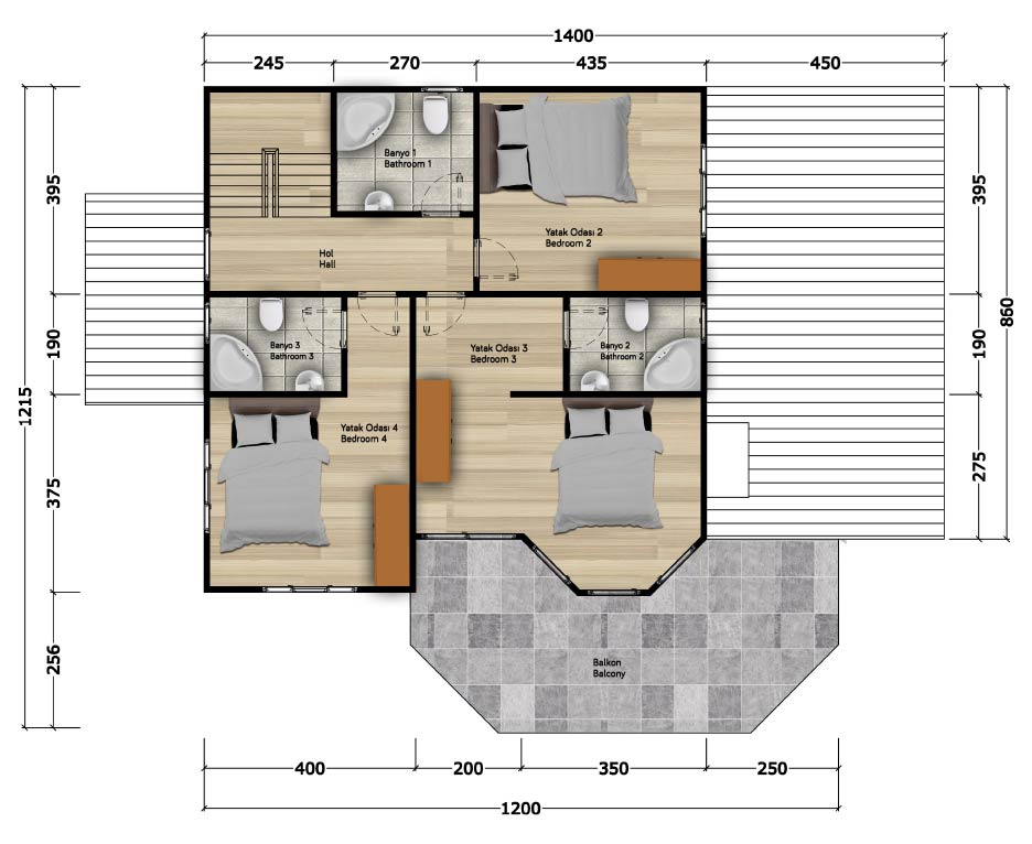 Yatak Odası 3 : 22m²