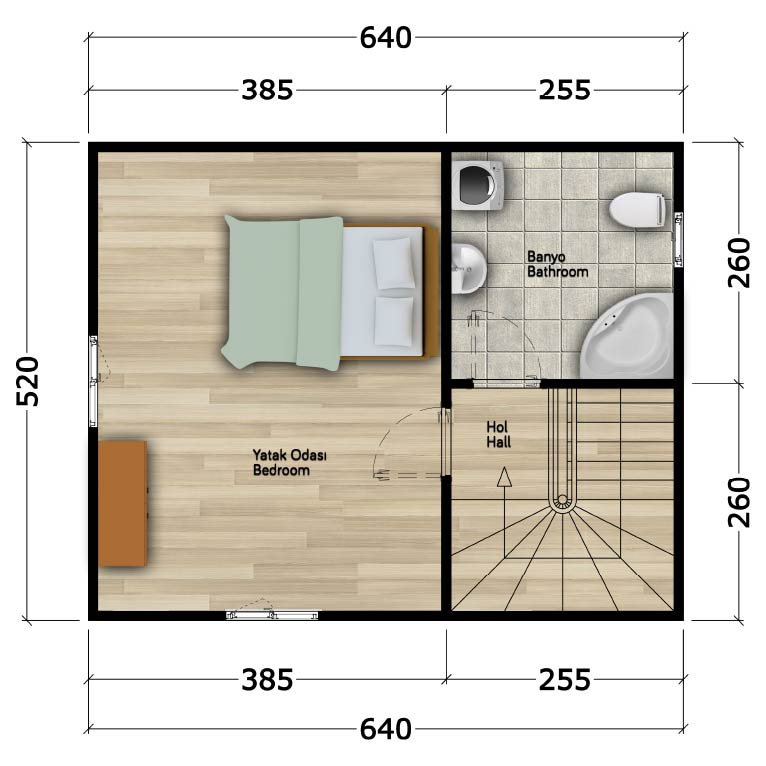 Normal Kat ( 33m² )Yatak Odası : 19m²Banyo : 6m²Hol : 2m²